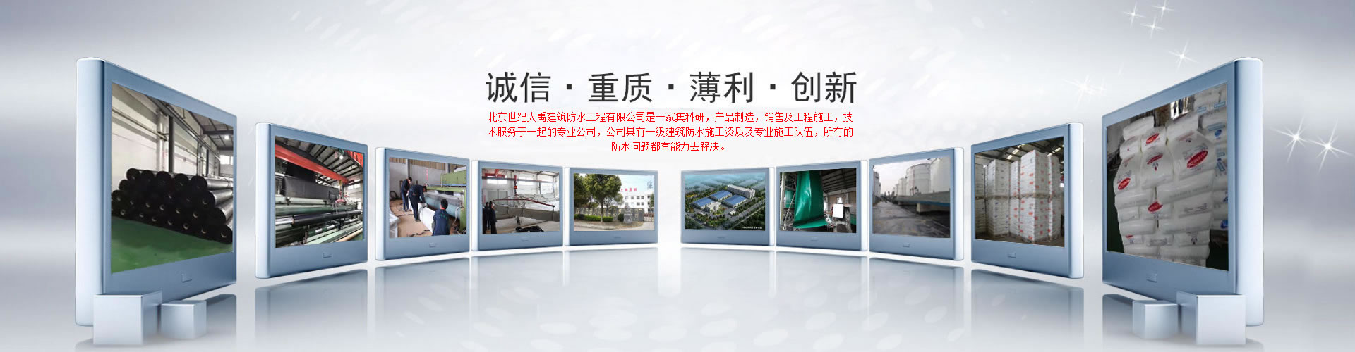 北京世紀(jì)大禹建筑防水工程有限公司是一家集科研,產(chǎn)品制造,銷售及工程施工,技術(shù)服務(wù)于一起的專業(yè)公司,產(chǎn)品主要包括道路橋梁專用材料、建筑堵漏材料、建筑防水卷材、建筑防水涂料等。產(chǎn)品行銷全國(guó),形成了覆蓋全國(guó)的營(yíng)銷服務(wù)網(wǎng)絡(luò)。產(chǎn)品廣泛應(yīng)用于建筑物屋面、地下、地鐵、隧道、橋梁、泳池、糧庫(kù)、種植屋面等防水、防潮、防腐、防滲等工程。公司具有一級(jí)建筑防水施工資質(zhì)及專業(yè)施工隊(duì)伍,所有的防水問(wèn)題都有能力去解決,作為系統(tǒng)防水解決方案的提供者,我們已經(jīng)將各項(xiàng)防水系統(tǒng)成功應(yīng)用于國(guó)家大型基礎(chǔ)設(shè)施建設(shè)項(xiàng)目中,防水系統(tǒng)優(yōu)良的應(yīng)用效果也獲得了用戶及社會(huì)各界的高度評(píng)價(jià)。 用戶滿意是企業(yè)永恒的追求,在充滿機(jī)遇挑戰(zhàn)的時(shí)期,將以市場(chǎng)為導(dǎo)向,以人才為根本,以技術(shù)為支撐,以資本為紐帶,打造一個(gè)實(shí)力雄厚、核心競(jìng)爭(zhēng)力強(qiáng)大的國(guó)際化企業(yè)。我們將用信念、追求和執(zhí)著開啟新的航程,乘風(fēng)破浪,勇往直前,駛向我們的理想和目標(biāo),為人類及社會(huì)創(chuàng)造持久安全的環(huán)境及構(gòu)筑和諧的人居環(huán)境貢獻(xiàn)我們的力量! |